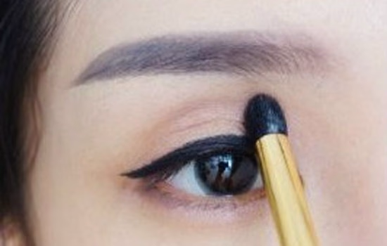 7.将深棕色眼影画在眼窝处注意只画眼球正上方一段哦。
