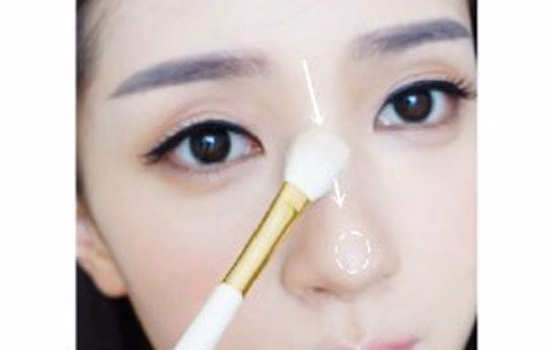 13.在鼻梁鼻头位置扫上高光提亮,脸部的额头、下巴也可以扫上一点高光提亮哈。