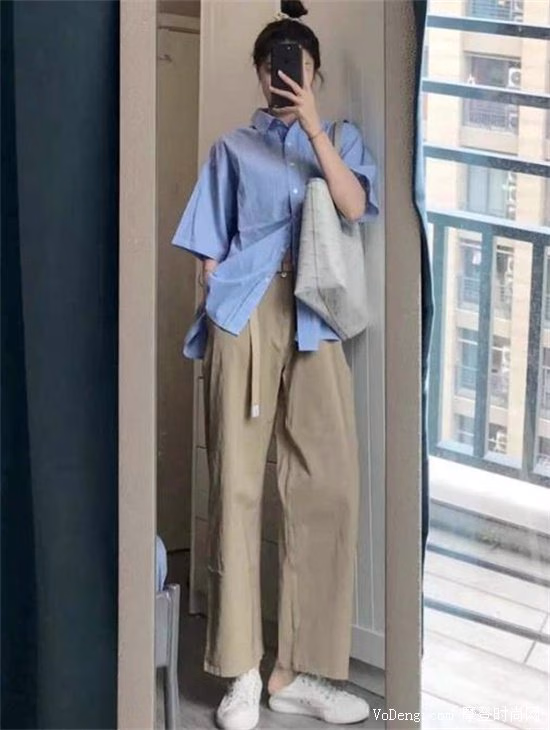 蓝色应该是男女老少都会喜欢的一种颜色了,蓝色不仅可以体现你的温柔恬静的氛围感,又能体现出你的不凡衣品。当你选择穿蓝色的小衬衫时,你就能发现这正是你想要的灵动朝气的感觉!搭配一双小白鞋,又能学院风拉满,十分减龄。