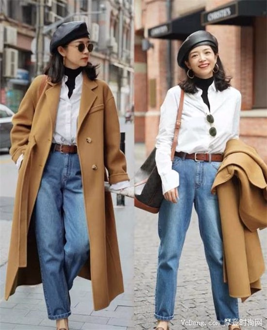 大衣和牛仔裤的搭配属于是非常秋冬的万能搭配了。大衣是十分气质的存在,二者的巧妙搭配能让你很有女人味,带上墨镜,简直是秋日女神级别的存在!