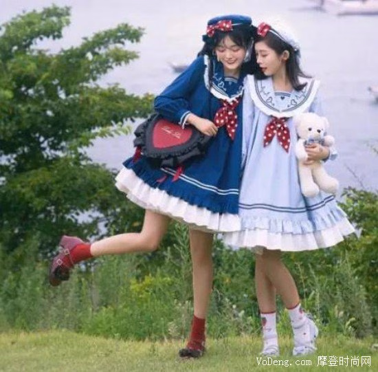 水手服与洛丽塔的结合物,有水手领衬衣、领结的元素在内。