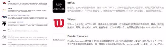 2、近年来,安踏集团又收购了两个品牌,分别是专业运动装备品牌WILSON威尔胜,以及专业户外运动品牌PeakPerformance壁克峰。