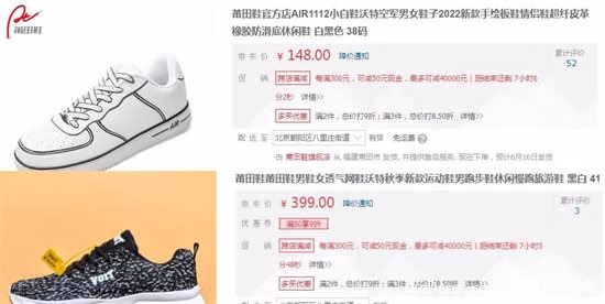 目前,莆田鞋有了多个购物平台的专卖店,价格还是比较亲民的,想要买鞋的朋友可以去看看。它家最便宜的是AIR1112小白鞋,才148元,而最贵的透气网鞋也才399元,质量很有保障,性价比非常高。
