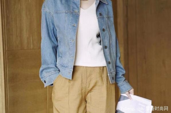卡其色和牛仔蓝都是比较休闲的颜色,两者搭配在一起感觉非常时尚,可以尝试搭配一件牛仔外套,整体看起来也非常年轻,一点都不显老气。