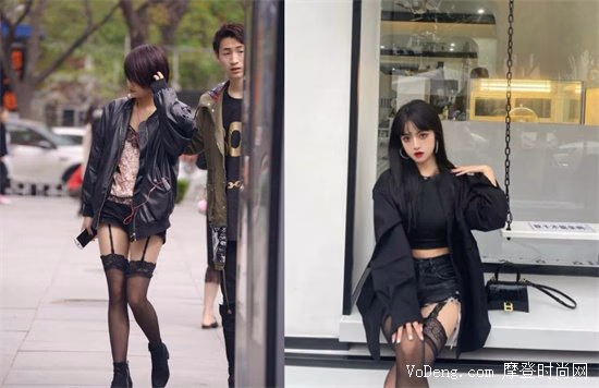 紧身的小连衣裙加上吊带袜,就风格比较百变了。你可以变成酷炫的街头辣妹,也可以化身为清纯的邻家甜美。但是因为连衣裙的紧身材质,就使得你的整体的穿搭非常性感迷人!而吊带袜的加入,更是为这套穿搭增入了一丝诱惑力!