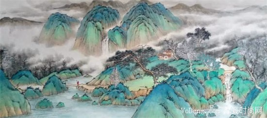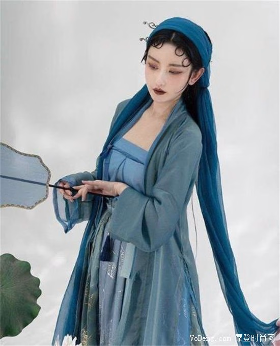 青色与墨蓝色的组合经常出现在古代的山水画中,二者的结合就非常古风味道,是汉服的常见搭配颜色。