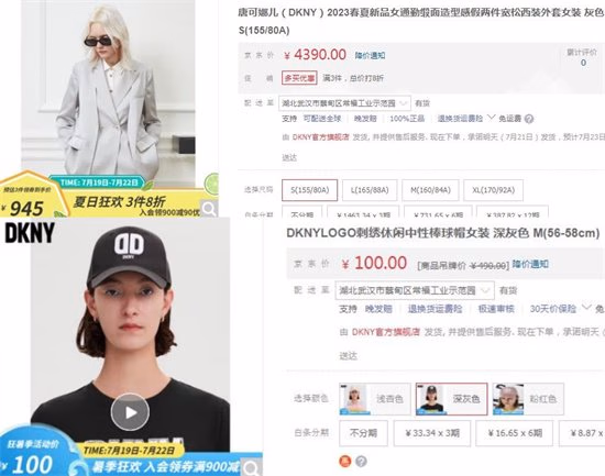 它家最贵的是通勤缎面造型感假两件宽松西装外套女装,要4390元,最便宜的是LOGO刺绣休闲中性棒球帽,只要100元即可到手。