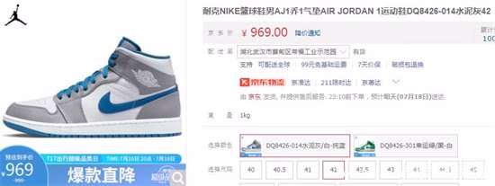 1、AJ1乔1气垫AIR JORDAN 1运动鞋水泥灰——969元
