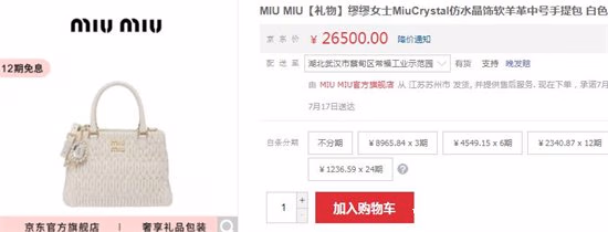 1、MiuCrystal仿水晶饰软羊革中号手提包——26500元