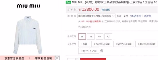 2、缪缪女士新品条纹茧绸衬衫上衣——12800元