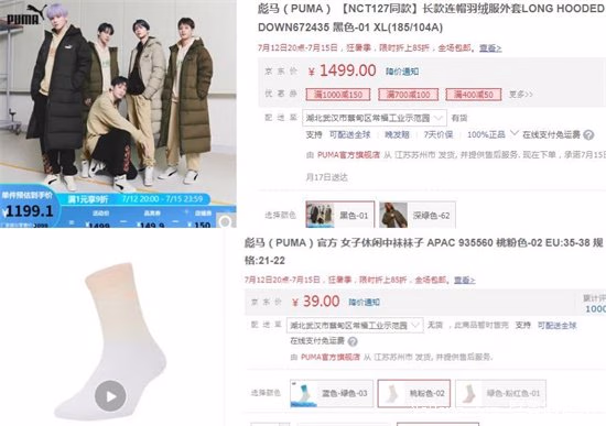 PUMA最贵的产品是长款连帽羽绒服外套DOWN672435,售价1499元;而它家最便宜的是女子休闲中袜袜子APAC935560,一双39元。