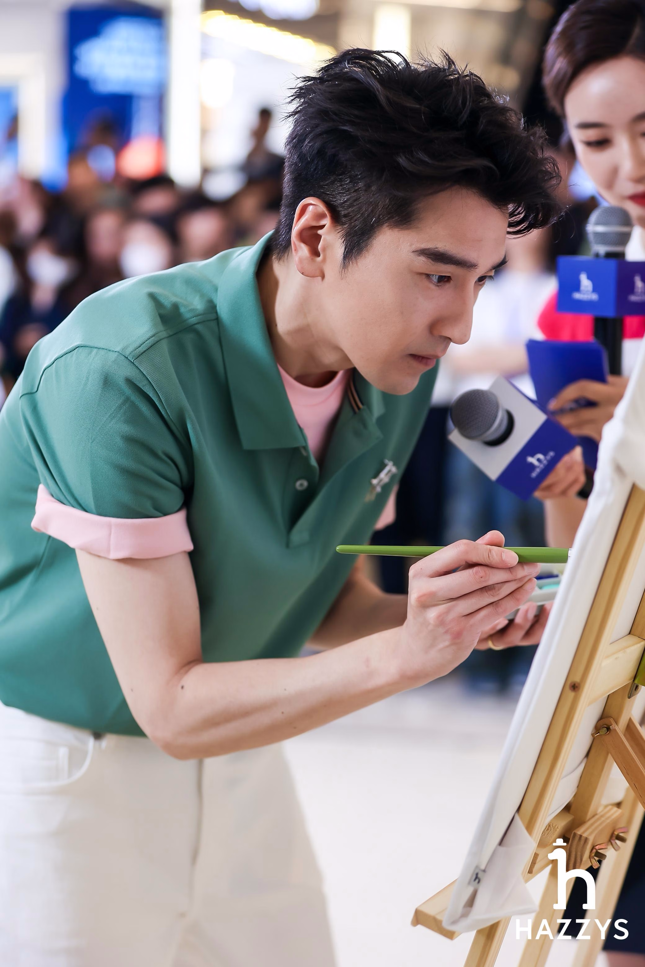 将快乐随心涂抹,映像成趣,赵又廷现场进行DIY手绘polo,共享快乐Wi-Fi,正如HAZZYS ICONIC多彩Polo系列增添的无限意趣,无论是走出户外、短暂旅行,还是生活中放松休闲,都能悠然随心,闲逸自如,用舒适着装浸入日常,在不同的颜色里捕捉快乐。