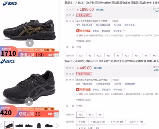 它家最贵的是跑步鞋男鞋MetaRun高端跑鞋1011B294,售价1890元一双;而最便宜的是跑鞋JOG1002透气男黑武士跑步鞋,一双449元。