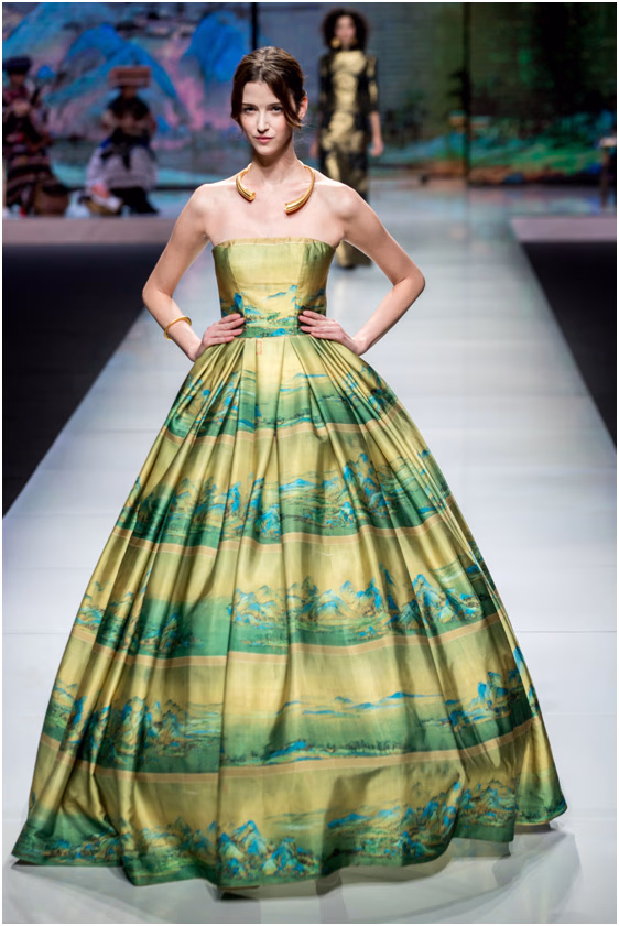 “在国际大牌都在走联名路线的今天,我们尝试用创新的方式、跨界的思维,与邮票文化联名,共同创造一种更受年轻人喜爱的潮范儿中国风。在设计理念上,我们希望通过现代设计,将方寸之间的美,变成时尚生活的一部分。在创作过程中,我们始终坚持以手工之美代替机器生产,以匠人精神呈现中华神韵。因为我们相信,不论潮流如何变更,我们自己的文化就是最动人的美学力量。”本着这样的设计理念,本季EVE CINA时装采用刺绣 、印花、立体拼贴等多种设计手法,把邮票上的图案及时代印迹过滤成时尚新理念。以更加生活化的方式,诠释着正在故宫展出的中国青绿山水代表作——千里江山图、著名艺术家、邮票设计家陈绍华先生、郭承辉先生设计的生肖龙邮票,著名山水画家许仁龙先生设计的长城邮票。通过时尚语言诠释精美方寸,既是对祖国壮美河山的颂扬、对生肖文化的传承,以及对长城为代表的人类历史文明的礼赞,也向世界展示着植根于五千年中华文明的中国时尚态度。