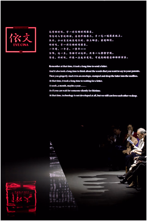 一位老人家、一位年轻人、一位从没写过信的绣娘……以三段安静的真人独白为开场的时装秀,将现场600余名嘉宾带回那个依靠书信传情达意的年代。