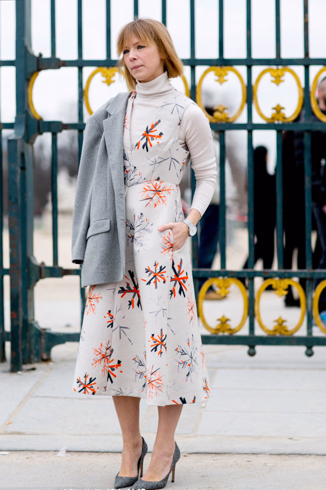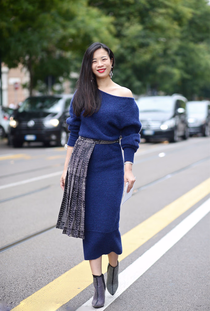 即便只是针织裙+长靴,风格也能千变万化,换个亮眼的橘红色,冬日街头也能明亮温暖。