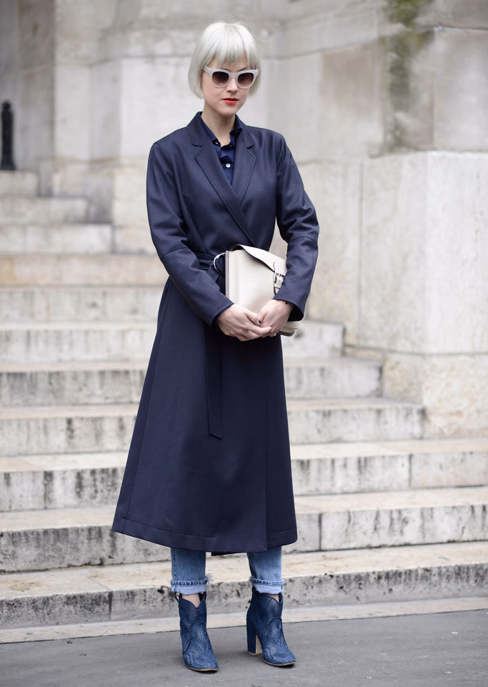 不妨像Linda Tol一样,将大衣的腰带系在高一点的位置,重塑上下身比例,看起来更显高挑。