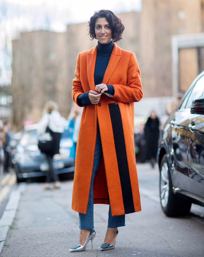 全身同色法固然显高显瘦。但高个子女生,偶尔可以尝试撞色方案,让你的长大衣造型更活泼生动。若是嫌对比色相撞太浓艳,不妨试试邻近色,让整身色彩撞而不乱。