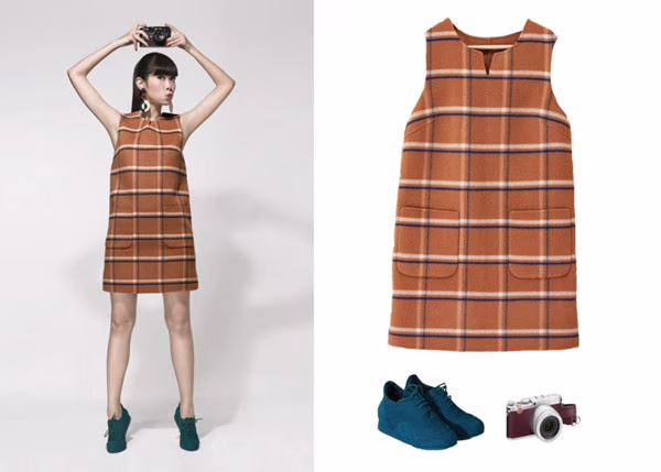 果然是“百变叶子”。这会叶子一身棕色格子冬裙,温婉大气。想不到,接下来叶子却是180度转弯,没有搭优雅短靴而是混搭一双绿色运动休闲鞋,顿时让温雅也俏皮起来,打破了死板的印象。