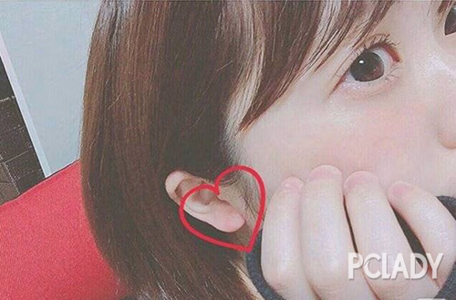 1、把粉红色的腮红直接打在耳廓和耳垂上,让人有一种恋爱时“脸红到耳根”的激萌感。