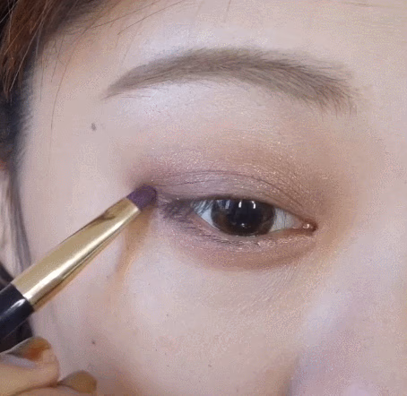 奶茶色虽然美但很容易让人看起来眼睛无神,所以眼尾和下眼线的加深可千万要记住,选择小号的眼影刷在下眼线和上眼尾处晕染深色眼影,少量多次的打造出渐变的效果。