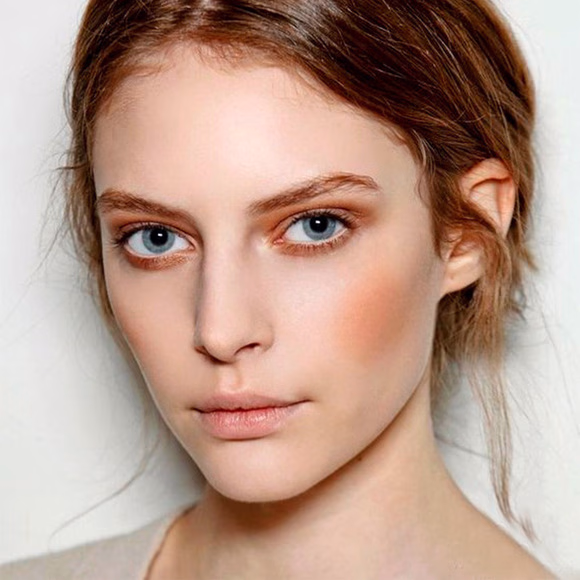 Step2 用眼影刷再蘸取一点橘红色的腮红,刷在眼下位置,并用大刷子晕染开,打造深浅分明的效果