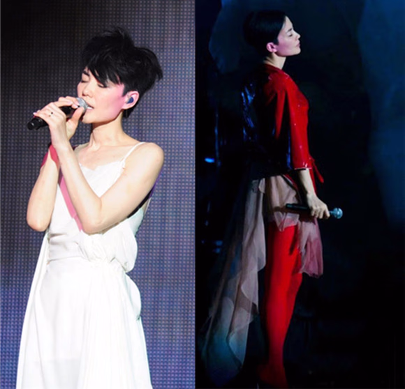 其实这种玩法王菲很多年前就试过啦,在耳朵的两鬓扫上大片的腮红,这种大面积的化法,除了少女的娇羞感,还有种蜜汁很酷的感觉