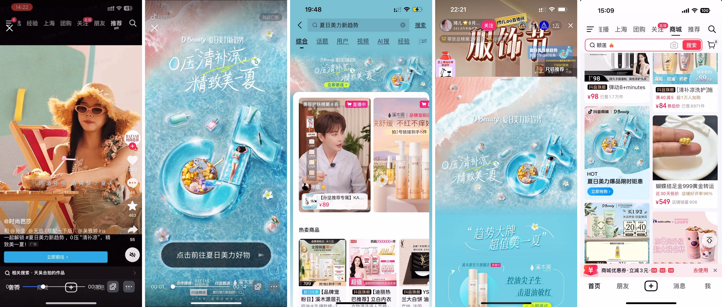 今年以来,抖音商城美妆个护行业围绕「D-Beauty」IP已经分别推出过“春夏美妆趋势发布”、“春日美力新趋势”等趋势类营销活动,「D-Beauty·夏日美力新趋势」作为系列延续,充分挖掘时令需求和品类特色,并联动内容场+营销场全域资源,同时细分至夏日场景下的趋势类目,更针对性地以优质内容驱动品牌声量爆发,助推品牌放大行业号召力以完备的转化链路助力品牌种收一体、品效双赢。