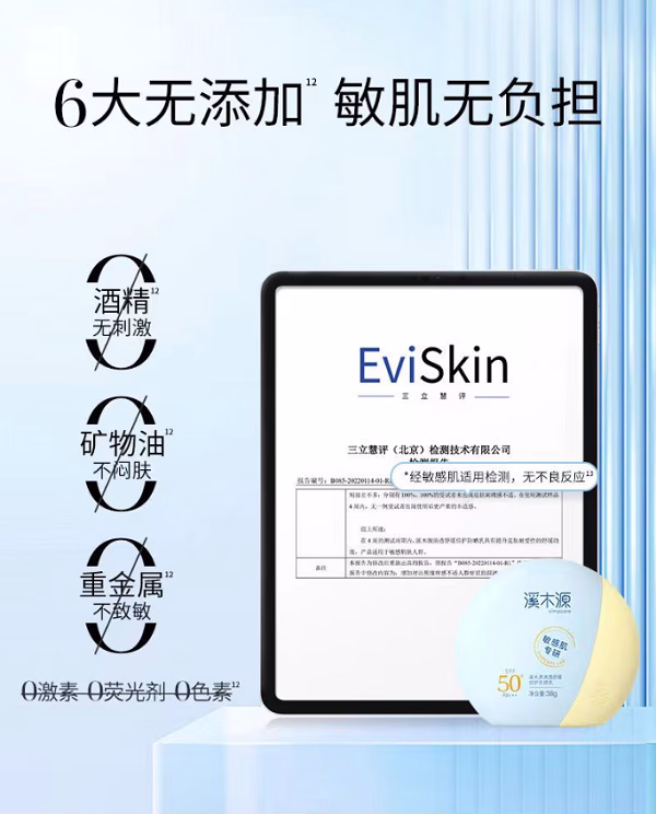 业界权威检测机构EviSkin三立慧评检测技术中心7对第二代「小蓝盾™」展开的敏感肌适用性测试结果显示,这款防晒除不含激素、荧光剂、色素等有害成分之外,它亦有提升皮肤耐受性的舒缓功效,适合敏感肌人群使用。