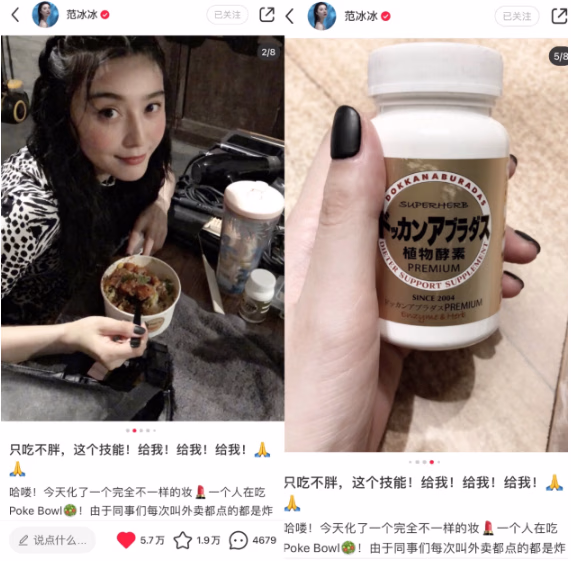 正式开动前,范冰冰从她的化妆包里拿出她的秘密武器—Dokkan抖康香槟金纯植物酵素,19年的时候范冰冰也曾在社交平台上分享过这款来自日本的酵素。范冰冰推荐后,小红书、网易考拉等多平台相继断货,抖康酵素蹿升至酵素品类第二名,各维度的销售数据一路飙升,掀起了“酵素热”。