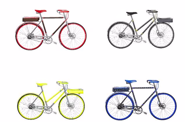 本次推出的LV Bike包含封闭式及无上管式车架两种设计,均配有双速曲柄。经典Monogram 款LV Bike以皮革为主要装饰元素,座垫裹有经典路易威登镂花穿孔Mahina皮革。Damier Graphite款LV Bike整体色调以黑灰为主,以亮黄色皮革为点缀。本系列还包含亮眼的橙黄款,及源自路易威登女装艺术总监Nicolas Ghesquière设计的Since 1854 提花织物款。LV Bike单车均可在后轮上方的皮革标牌定制个人标识首字母烙印。