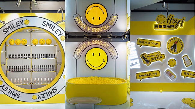 最近,走进南京德基广场地下一层的H.E.A.T喜燃店铺,首先映入眼帘的便是一个个大型的黄色笑脸,这个微笑的表情,正是来自于新晋崛起的法国美妆潮牌Smiley Beauty(中文名:思麦脸)。Smiley美妆为正式入驻H.E.A.T喜燃,于中秋节前至9月末,在德基广场举办线下快闪店,活动现场运用大量Smiley招牌的笑脸元素,打造了多个网红打卡区,吸引众多年轻消费者前来探店拍照。