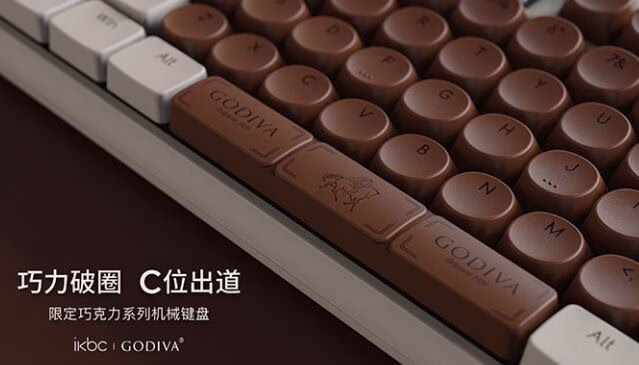 拥有94年悠久历史、传承比利时精湛制作工艺的巧克力品牌GODIVA歌帝梵, 与专注键盘创新研发、引领机械键盘潮流的键盘品牌IKBC,强强联手。同为行业翘楚的两大匠心品牌,大胆开启“破圈”行动。经典时尚的巧克力基因,注入精细严密的机械键盘,魅力实力加成,不止是简单的技能翻倍。GODIVA歌帝梵与IKBC联名款限定巧克力系列机械键盘,突破固有印象,凭实力创新,美妙科技生活,触手即达。