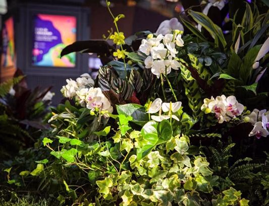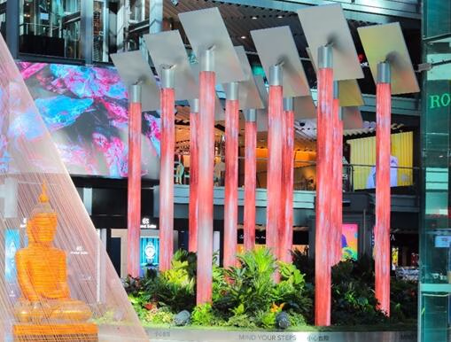 在此次以命名“新意无限,未来之森”为主题的年度活动中,其探寻未来绿意的旅程便始于这座坐拥在商场中庭区域、占地超过180平的静谧森林。整片“未来之森”的轮廓从 “无限Infinity”概念中汲取灵感。顶端高高树立的太阳能装置与建筑的穹顶从功能和形式上都形成了共融的一体, 为水雾装置带去能量,呈“∞” 符号的形状,向来宾呈现独特感官享受。“未来之森”将在侨福芳草地这座都市绿洲中,依托于阳光以及水分的滋养, 通过2个月时间的持续变化,将自然界的光照、水分等能量源源补给丛林中的花卉植物的生命养分,以繁花簇放唤起初冬时节的暖意,生生不息的花海尽管在寒意之中也将通过微小细节,赋予公众内心念力与期冀的深层感知。