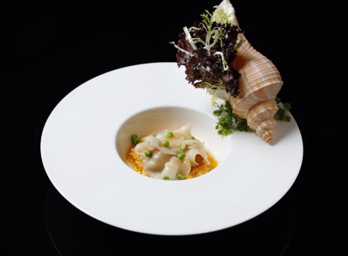 十月秋风起,品蟹正当时。本次秋季菜单选用时令食材,带来让人回味无穷的美味臻品。菊黄蟹肥,作为秋季餐桌主角的蟹,成就千万人的美味诱惑。其中,主菜之一珊瑚灵响螺片,以精心挑选的蟹品,手工现拆剥成新鲜蟹肉和蟹黄,颜色犹如深海橙白相间的珊瑚群,晶莹透亮,让人垂涎。蒸出鲜嫩的蛋白,再配上弹牙的响螺片与勾芡的蟹肉和蟹粉,味道鲜香至美,柔嫩的响螺在口腔中爽脆回甘;软糯蟹肉,每一口都在挑动着食客的味蕾,让人齿颊生香,回味悠长。
