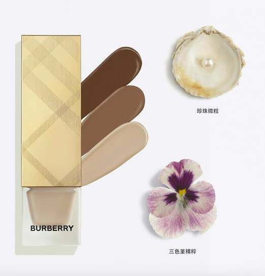 2021年9月,BURBERRY美妆推出全新鎏光焕彩恒颜粉底液,简称‘金管粉底液’。专为干性与瑕疵肌肤倾力打造,将极具盈透鎏光的妆效与多重精华的养肤功效完美融合, 缔造富有光泽感的无瑕底妆,无论时光流转,始终光彩照人。