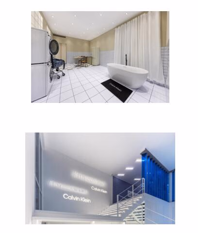 快闪空间还原了JENNIE的拍摄场景,在此拍照打卡的同时,更可享受专业摄影师带来的大片拍摄。楼层连接之处的墙壁上以霓虹书写Calvin Klein经典标语,文字重诉历代广告大片风采,刻画隽永时尚风格。