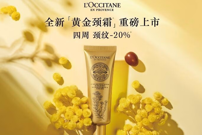 此外,欧舒丹标志性植物成分乳木果油因其所蕴含的Omega-6,使得颈部肌肤在抗老同时,也能滋养保湿,修复肌肤屏障。这次黄金颈霜通过腊菊与乳木果的高能植萃组合, 达到“淡纹、保湿、弹润”的功效,解决在颈部抗老领域大家都十分关注的肌肤问题。M&L实验室数据同样表明,连续使用四周欧舒丹黄金颈霜,颈纹可以淡化20%。*