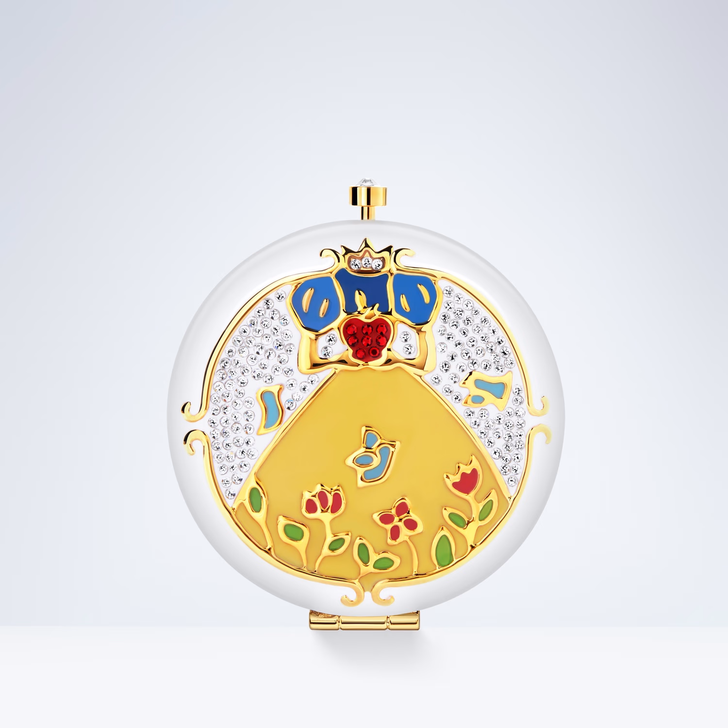 “魔镜,魔镜!谁是世界上最美的女人?”纯如白雪的镜子造型,公主捧着红苹果站在鸟语花香的丛林中,点点钻光如同施展魔法时的璀璨闪耀。