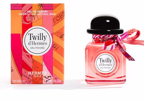 Twilly Eau poivree,是尽情享受人生、畅活人生的渴望。辛辣诱人、 光彩夺目,Twilly Eau poivree从外部肌肤环游至精神世界,缤纷艳丽,精辟有力。它点亮双眼、唤起所有感官。 三种崭新香氛原料调配出它的性感魅力:热辣、撼人心魄且丰郁的粉红胡椒,蕴含少女清新调性的玫瑰花心以及令人陶醉的广蕾香。这些原料的精华交织相融,织造出爱马仕女孩们之间那彼此联系的无形纽带。她们手中拿着的这款全新香氛的瓶身,与先前那款相较,既非全然相同,亦不完全互异。 更接近玫瑰粉红的香水瓶,在瓶颈上系着一条崭新的纤细丝带,展现调皮的扭转变化,也默契十足地呼应了爱马仕的特色。