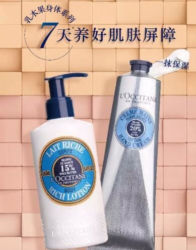欧舒丹经典乳木果身体系列包含不同乳木果油含量的保湿产品,满足不同肤质需求。欧舒丹乳木果经典润手霜作为经典乳木果身体系列的明星产品,富含20%的乳木果油,质地丰盈,轻松缓解双手干燥不适。一抹保湿8小时,保护手部肌肤屏障,快速吸收不留印。欧舒丹乳木果身体润肤露,富含15%的乳木果油,保湿效果长达48小时,改善干纹细纹,使身体的每个细节都滋养不粘腻,是日常身体护理必备单品。