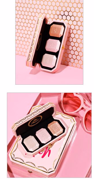 新年限量版三钻高光堪称美丽合集,从里美到外。外表秉持着品牌独有的钻戒盒包装设计,少女心爆棚!除了拥有灵动的外形,内盒也是闪爆出众,三种为亚洲女孩打造的限量新色,三种闪度,轻松满足日常高光的所有需求。