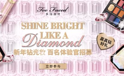 最后还有一个小福利告诉大家: Too Faced天猫官方海外旗舰店会在一月内免单100名晒单的钻光小甜心,还有真钻好礼等你来拿!快来晒出你的独家#TooFaced新年钻光妆吧!开启新一年的高光时刻,Toofaced为你助力!