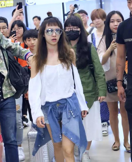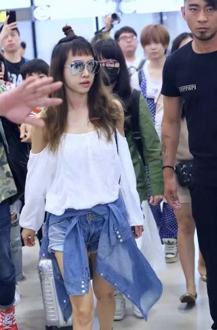 韩国妹子雪莉的机场照,choppy bangs再加上丸子头,青春可爱!感觉一下又回到了f(x)时期!