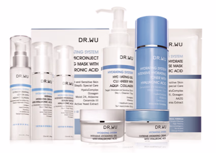 DR.WU玻尿酸保湿系列升级包括─化妆水、精华液、精华霜、微导面膜、生物纤维面膜…等,款款皆为高人气畅销明星商品。玻尿酸重度爱好者,更可从基础洁颜开始到保养的最后一个步骤,享有最完整的全方位保湿呵护!系列产品中,最受注目的当属创始经典玻尿酸保湿精华液,质地清爽,能瞬间吸收渗透,肤触立刻柔嫩细致,睡前使用一觉醒来依然水嫩透亮,妆前使用一整天也不脱妆!