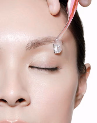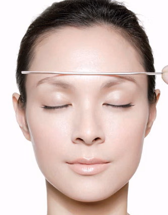 正向面对镜子,将笔刷平放在两眉上方,检查两边眉峰的高度,如果两边高度差别超过0.3cm,才需要修眉峰;尤其是初学修眉,不建议修整眉峰,会很容易破坏掉完整眉形。