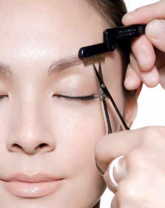 如果眉毛太长,可用钢梳将眉毛挑起后剪短。